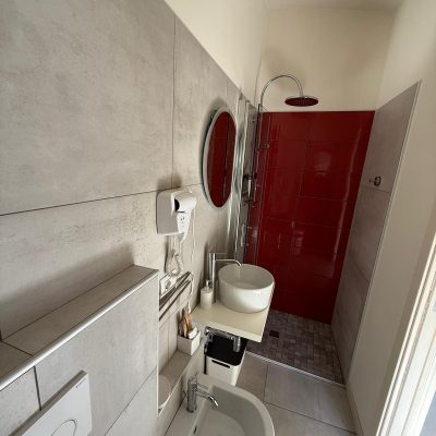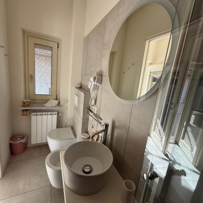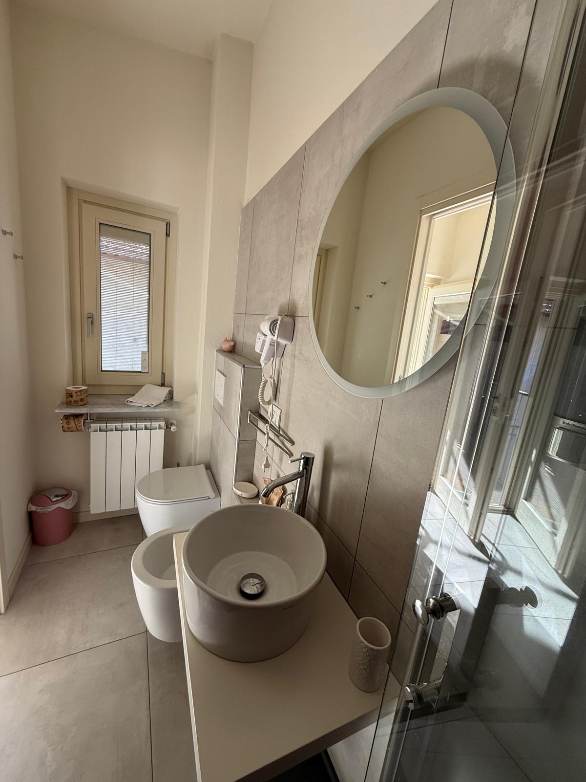 – Bagno moderno: ampia doccia con dispenser di shampoo, bagnoschiuma e balsamo. Incluso un Welcome Kit con spazzolino, kit barba, cuffia doccia, sapone intimo e gel igienizzante.