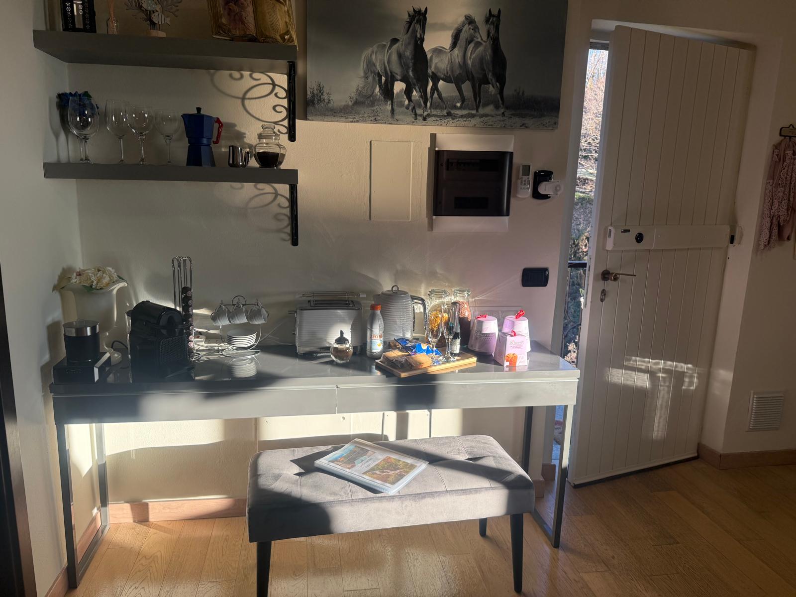 Cucina completamente attrezzata: stoviglie, posate, pentole, utensili da cucina, Lava lavastoviglie, forno, forno microonde, macchina per caffè espresso e americano, bollitore, tostapane.